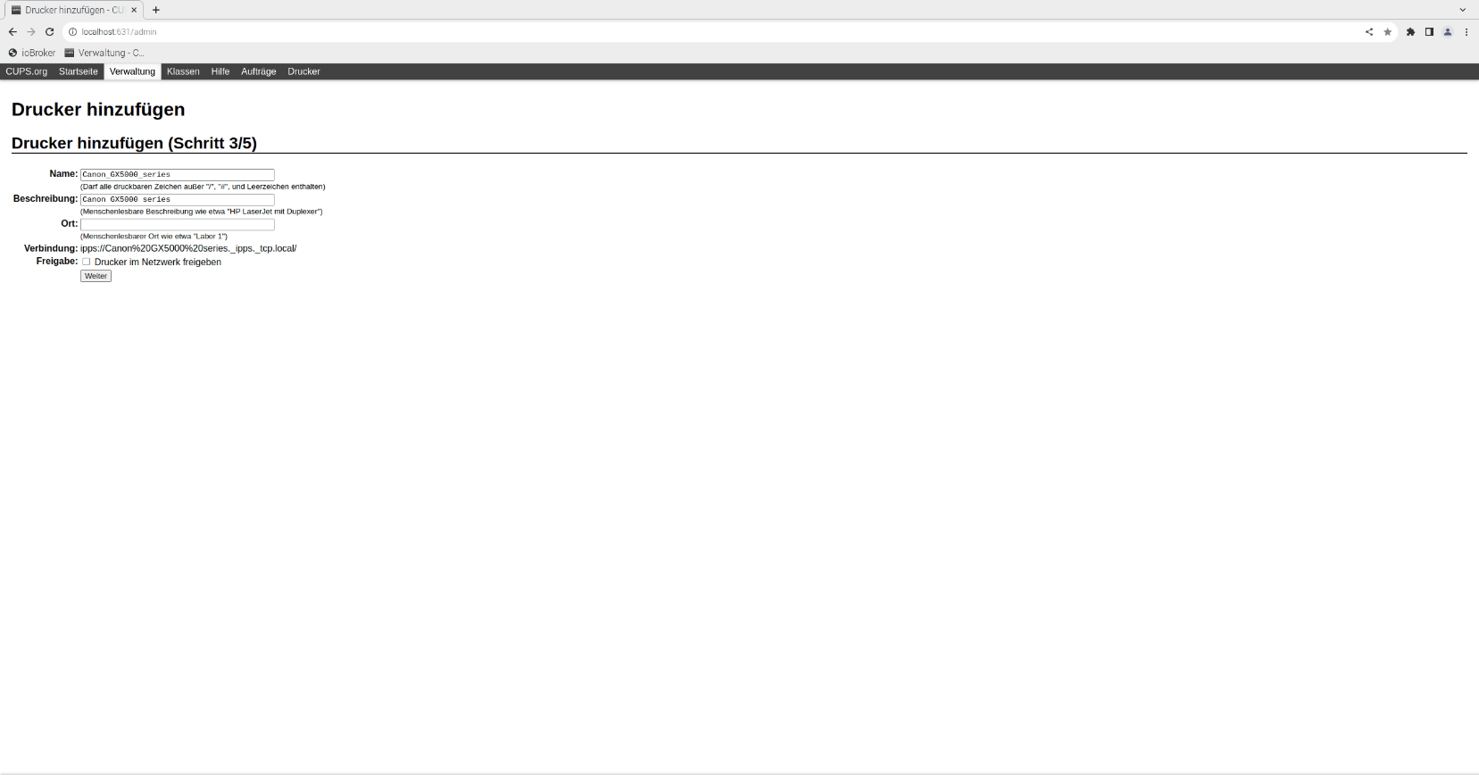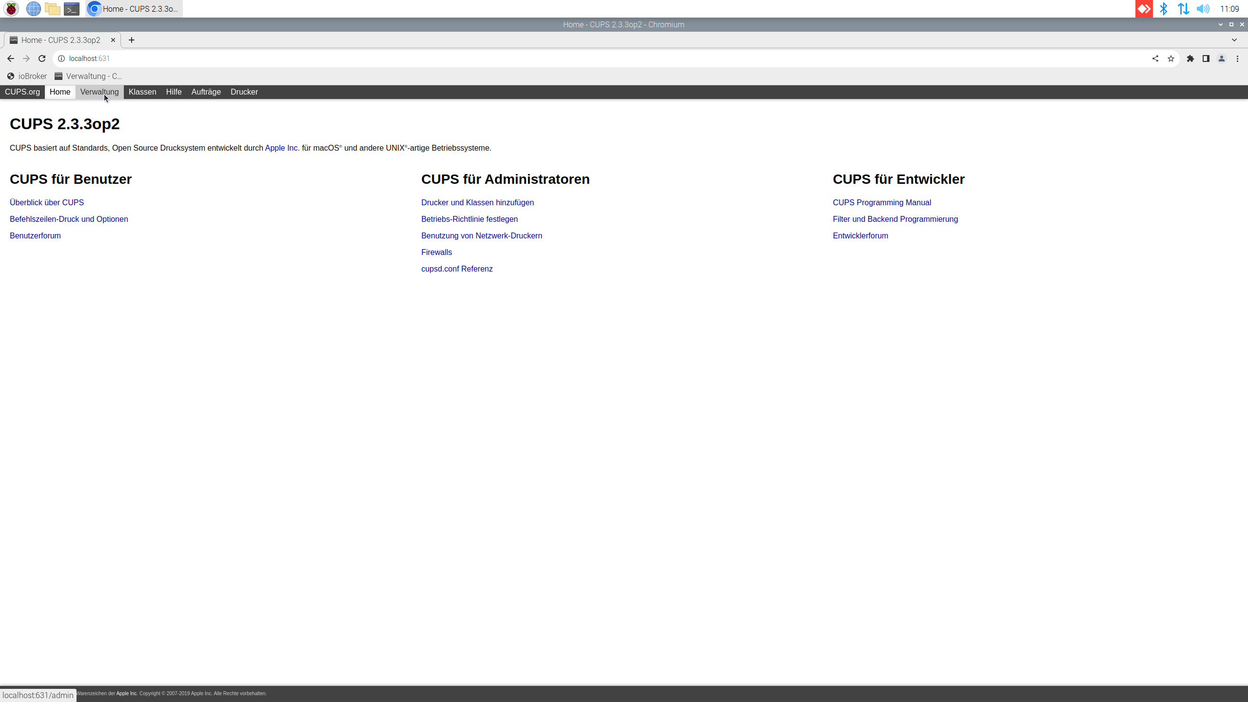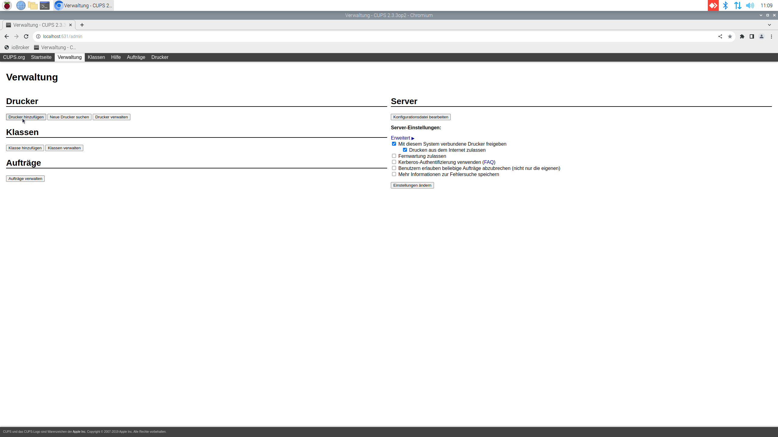 http://localhost:631/admin - Klicken Sie auf Verwaltung.