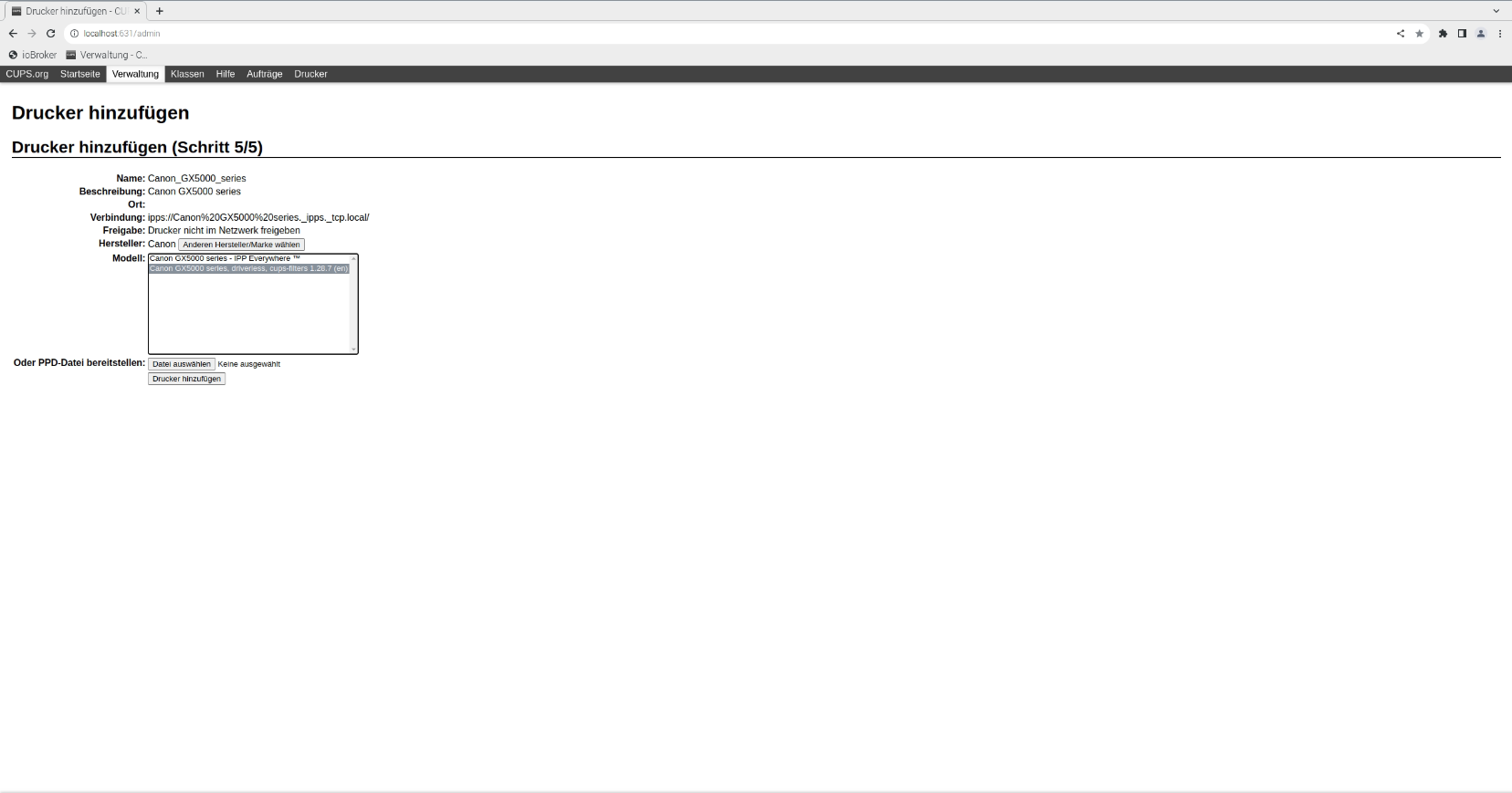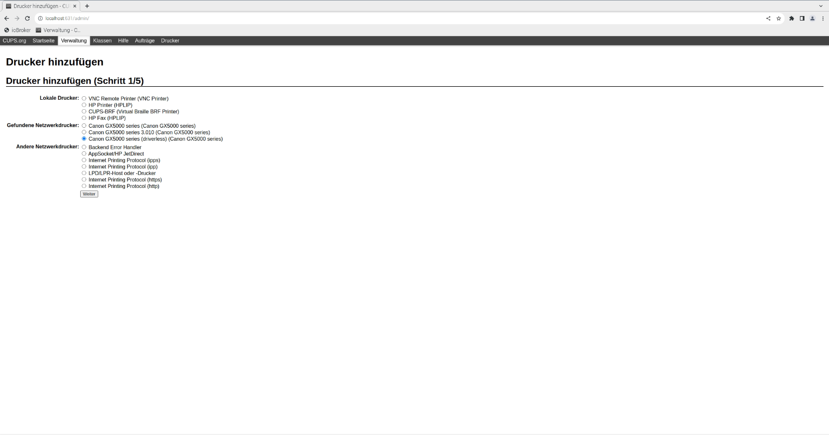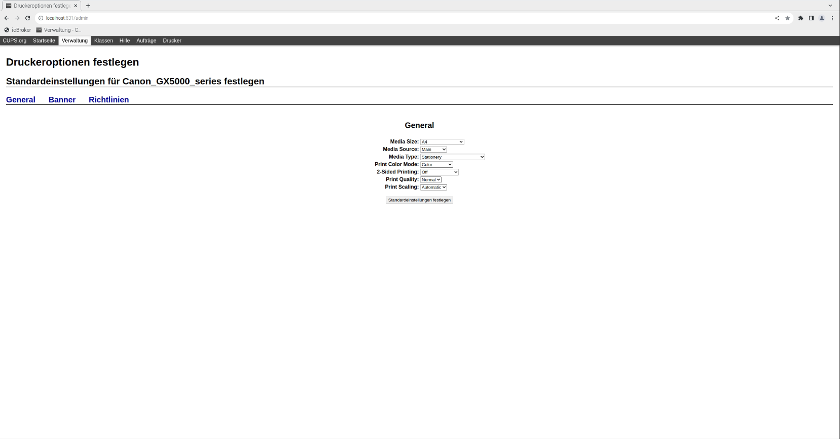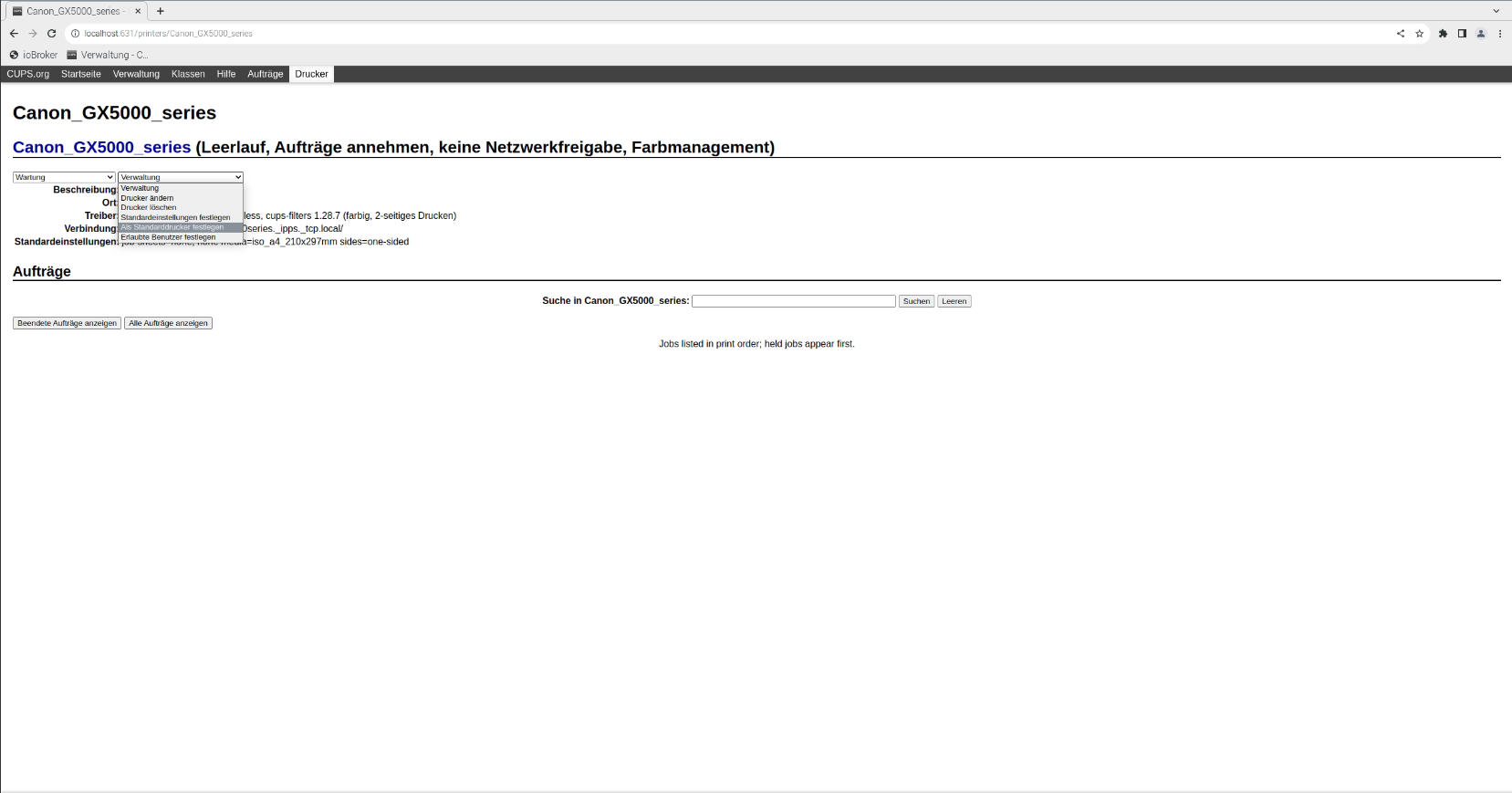 http://localhost:631/admin - Klicken Sie auf Verwaltung.