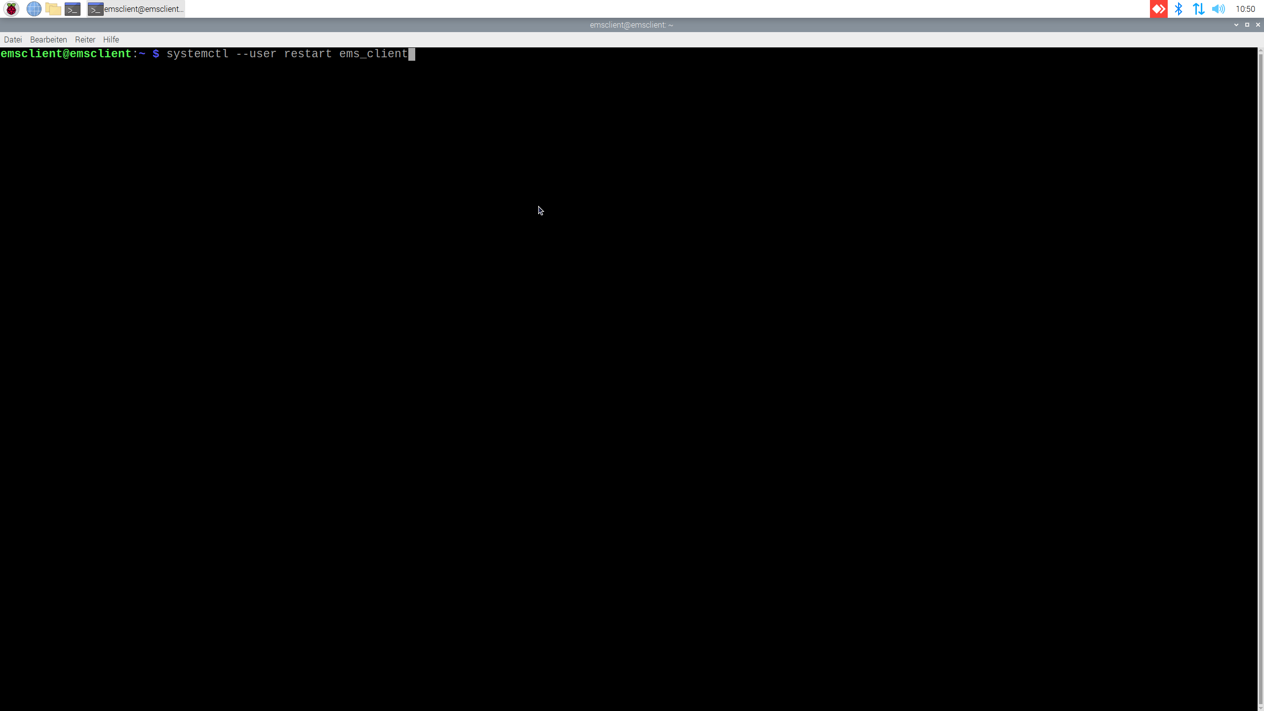 systemctl --user restart ems_client - Das Dashboard startet neu und wird wieder auf dem Raspberry Pi angezeigt.