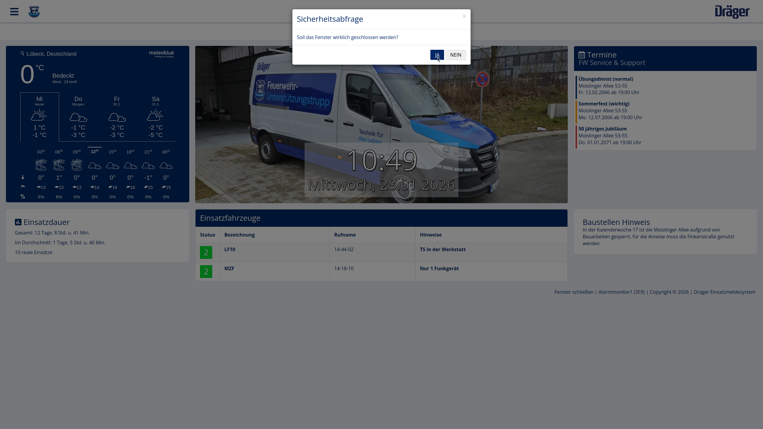 - Schließen Sie das EMS-Dashboard über den Button Fenster schließen.