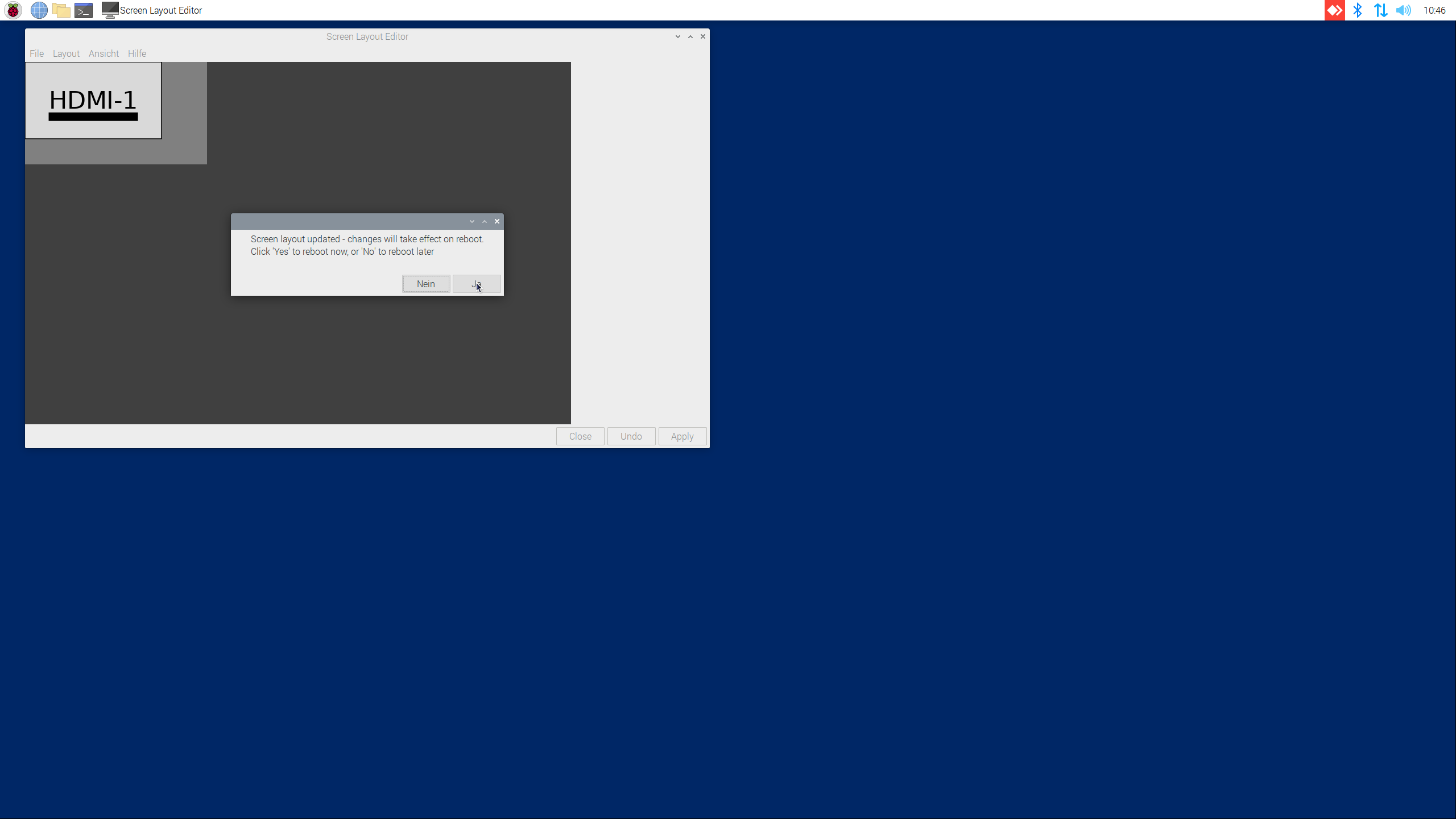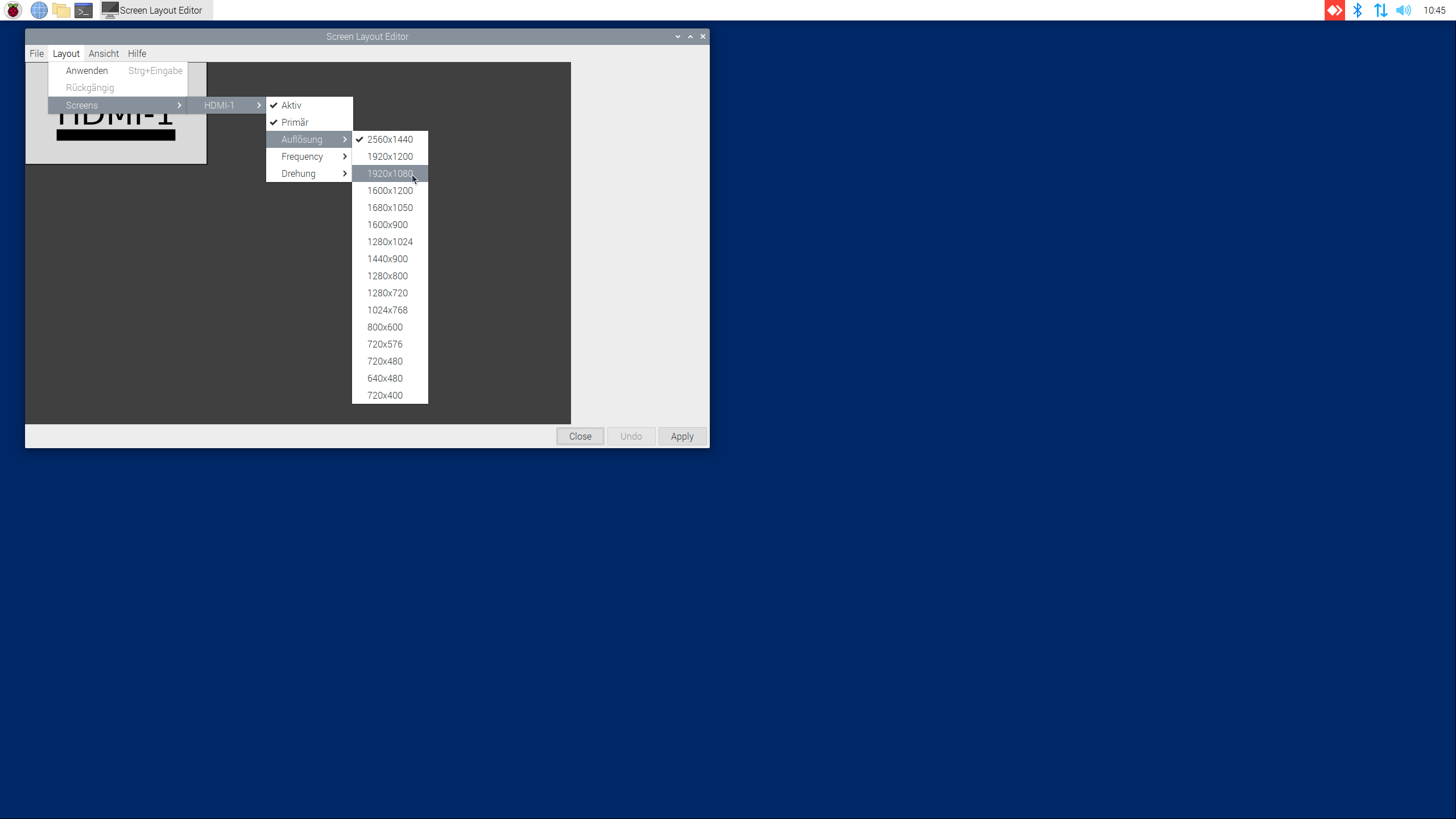 - Layout → Screens → HDMI-1 → Auflösung