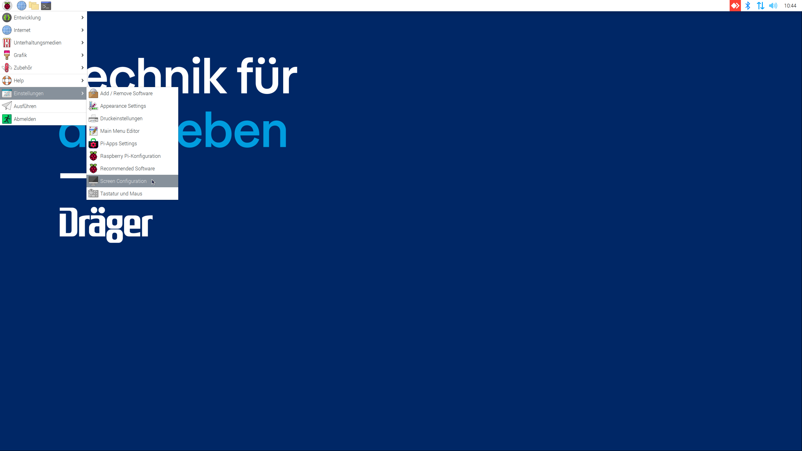 - Wählen Sie im Menü den Punkt "Einstellungen" und anschließend Screen Configuration.